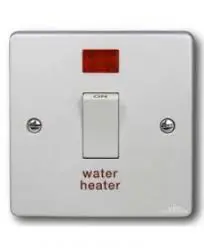 DP Water Heater 45A Switch 45 Amp double pole Water Heaterswitch with a neon indicator. In a white finish with smooth curved edges, this switch will blend into any modern building with ease.