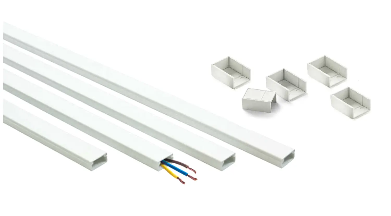 Mini Trunking are used for ducting electrical, telecommunication and computer network installations, ideally suited for refurbishment or new installation projects, tidying up unsightly cables, both in the domestic and commercial sectors.